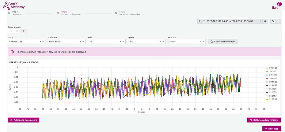 Designed for controlling machine axis movements, this use case allows high-frequency operating data to be recorded and any drift, such as variations in axis currents or backlash when ball screws reverse, to be detected quickly.