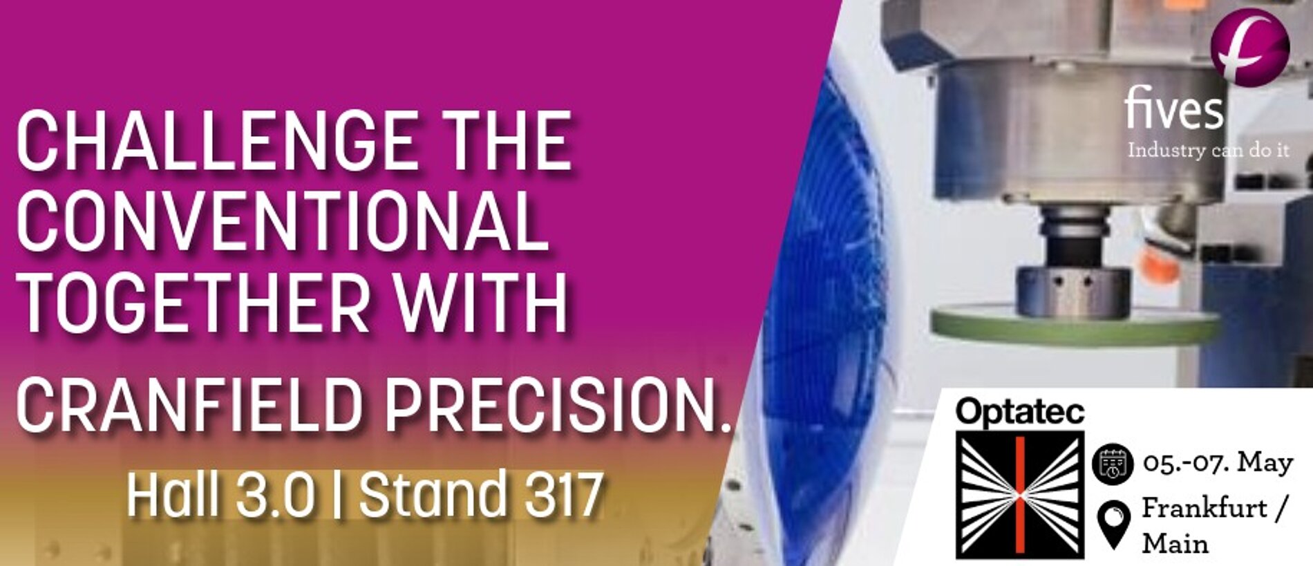 From May 5 to 7, 2026, Cranfield Precision, part of the Fives Group, will exhibit at OPTATEC, the international trade fair for optical technologies, components and systems, at the Frankfurt Exhibition Centre.